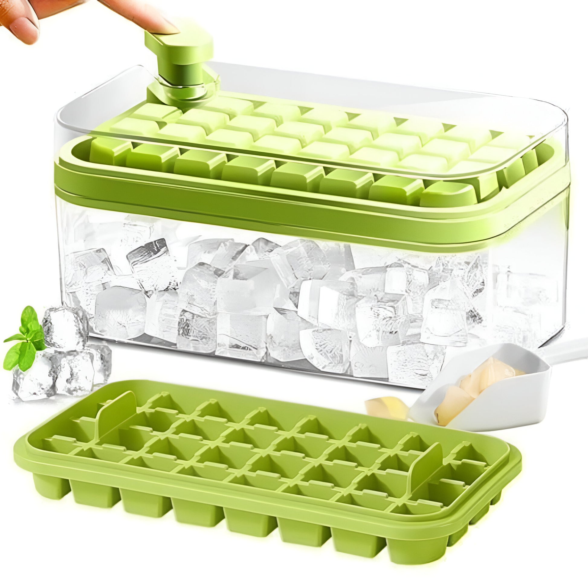 Silicone 2 Layer Ice Cube Trays With Storage Box & Ice Scoop